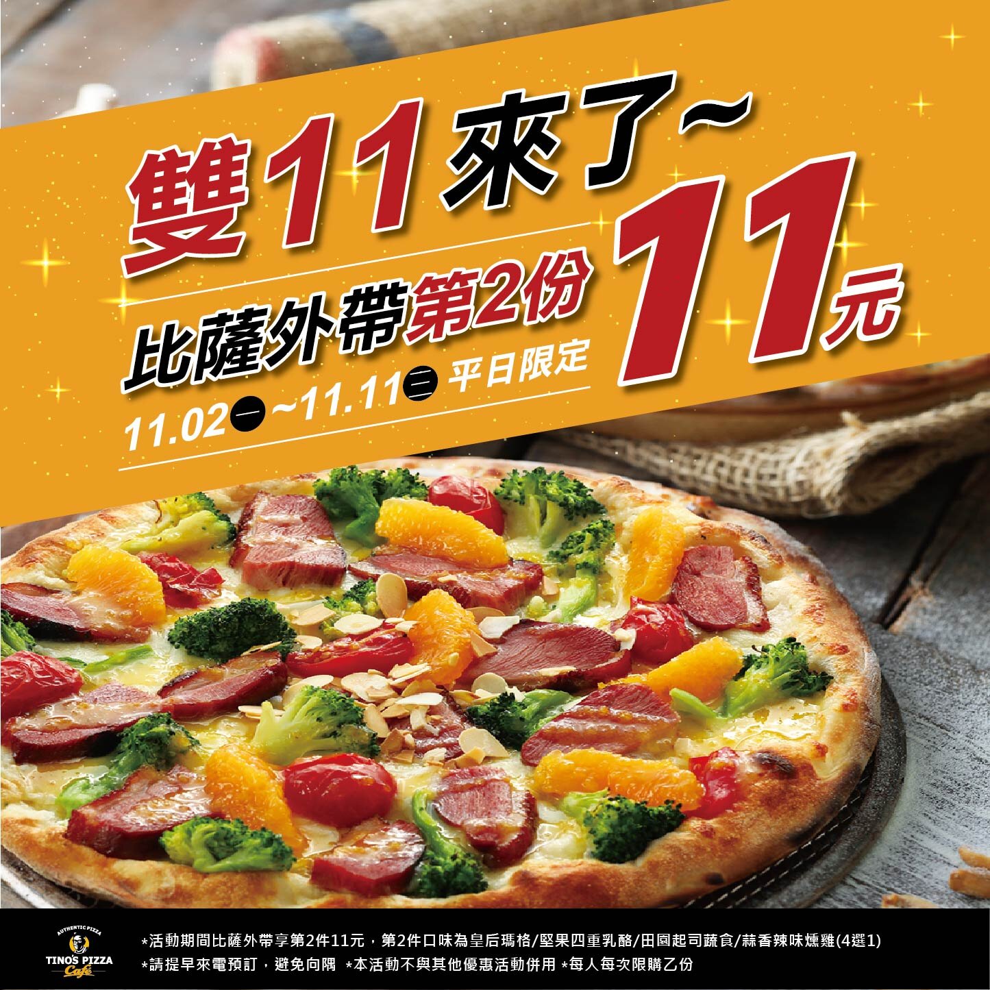 雙11來了!比薩外帶第2份11元