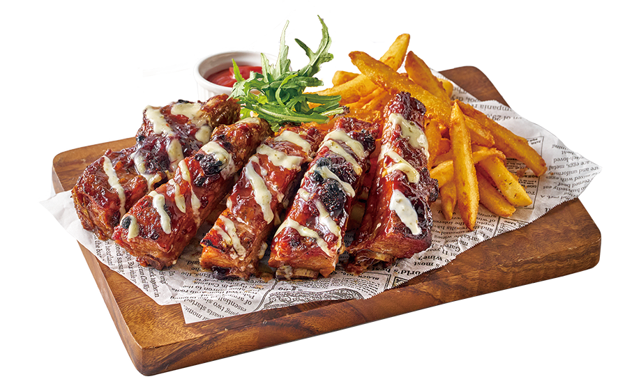 煙燻豬肋排、脆薯、特調莓果BBQ醬